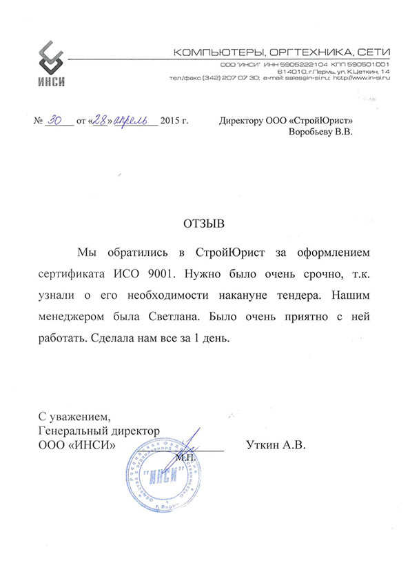 Отзывы клиентов "СтройЮрист" по ISO в Мытищах
