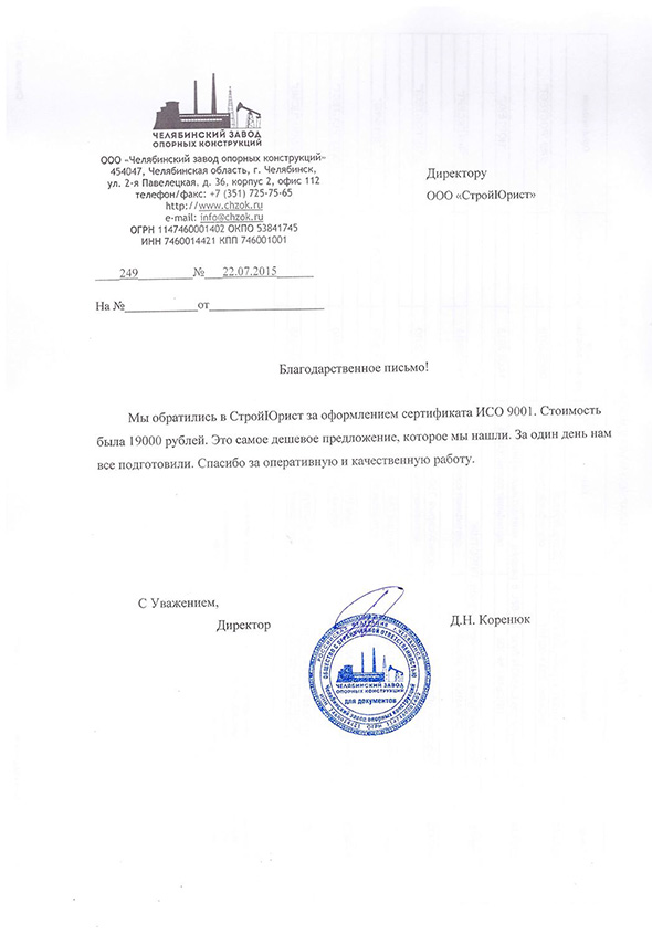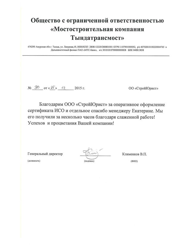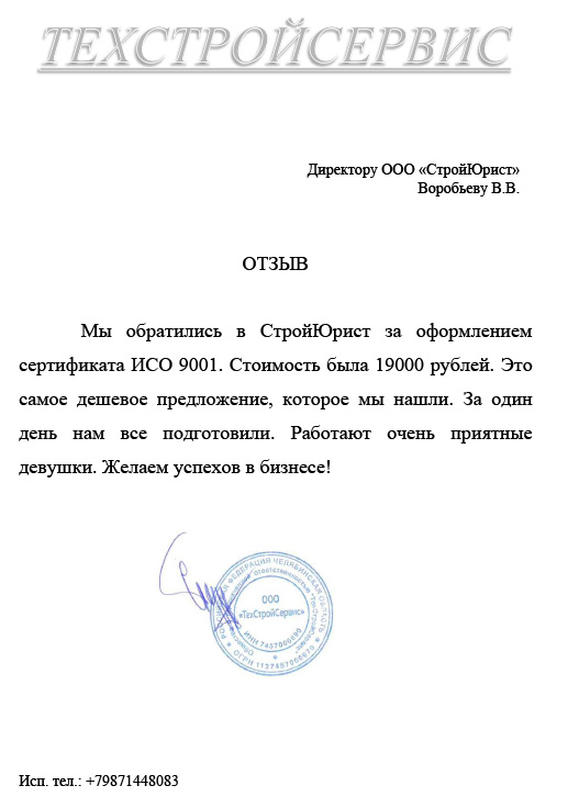 Отзывы клиентов "СтройЮрист" по ISO в Мытищах