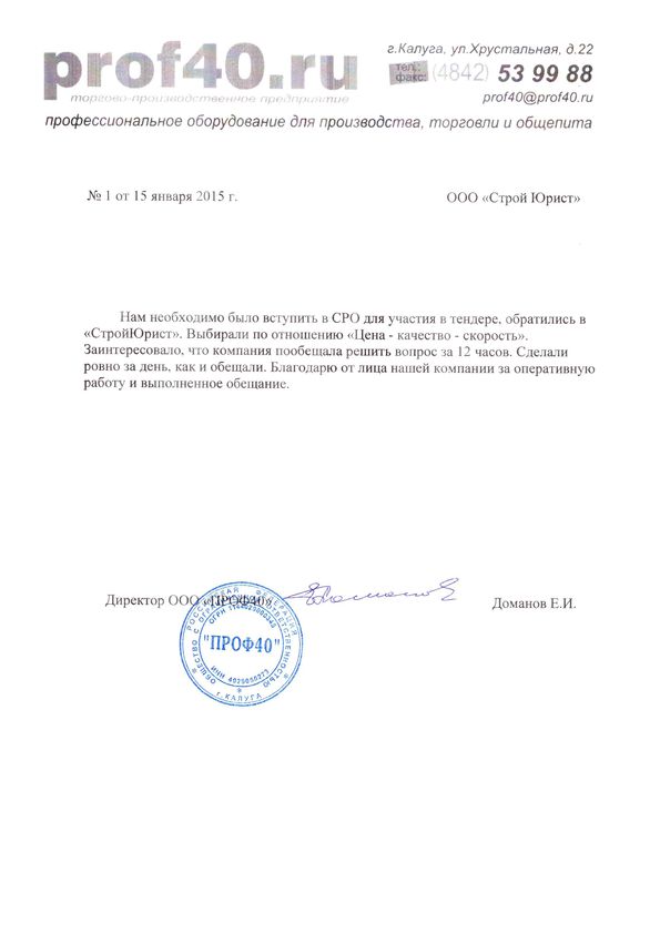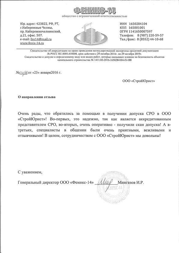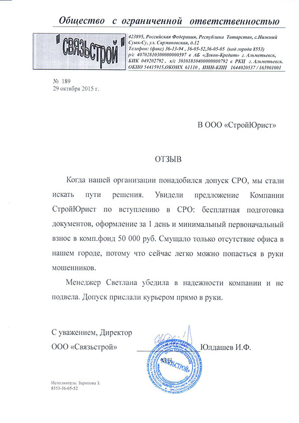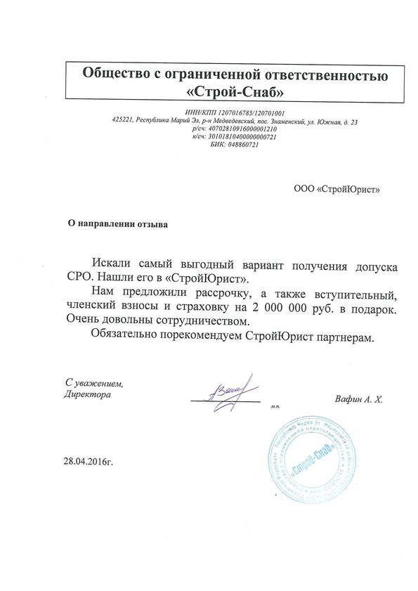 Отзывы клиентов "СтройЮрист" по вступлению в СРО в Мытищах