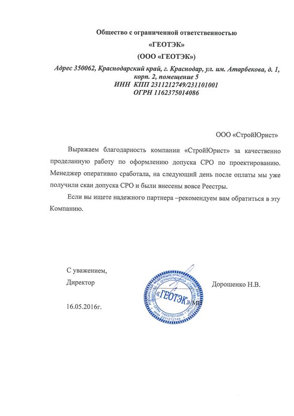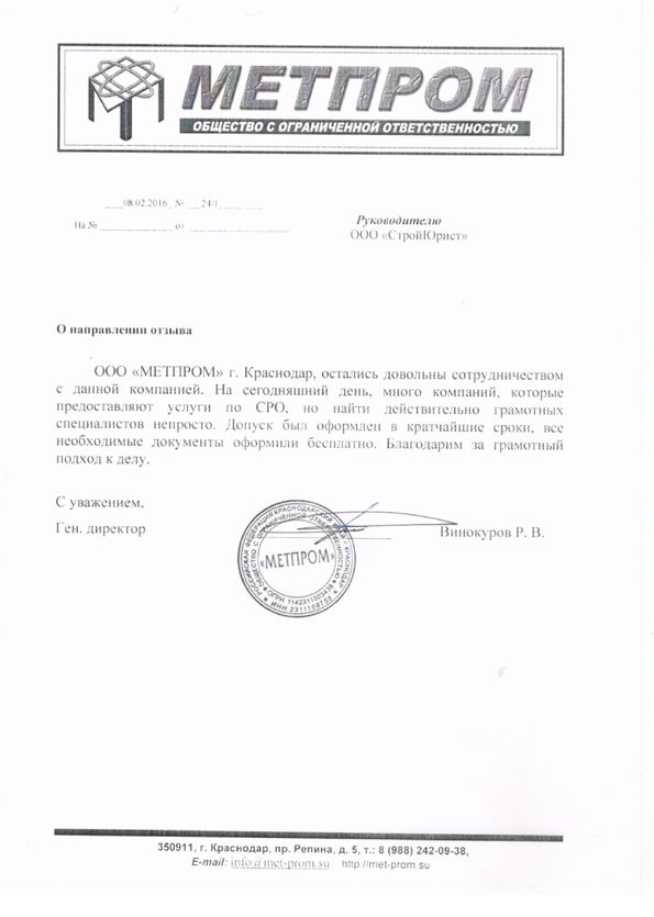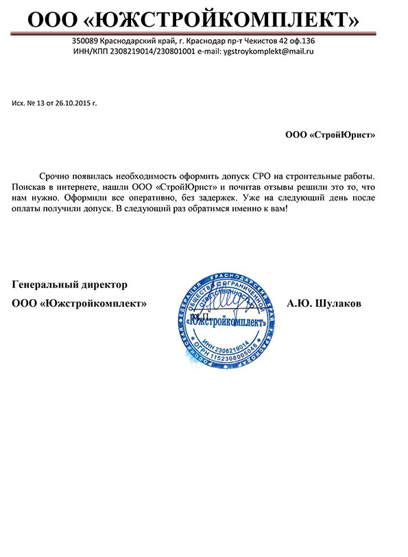 Отзывы клиентов "СтройЮрист" по вступлению в СРО в Мытищах