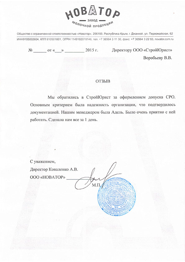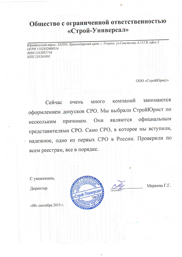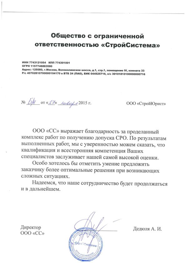 Отзывы клиентов "СтройЮрист" по вступлению в СРО в Мытищах