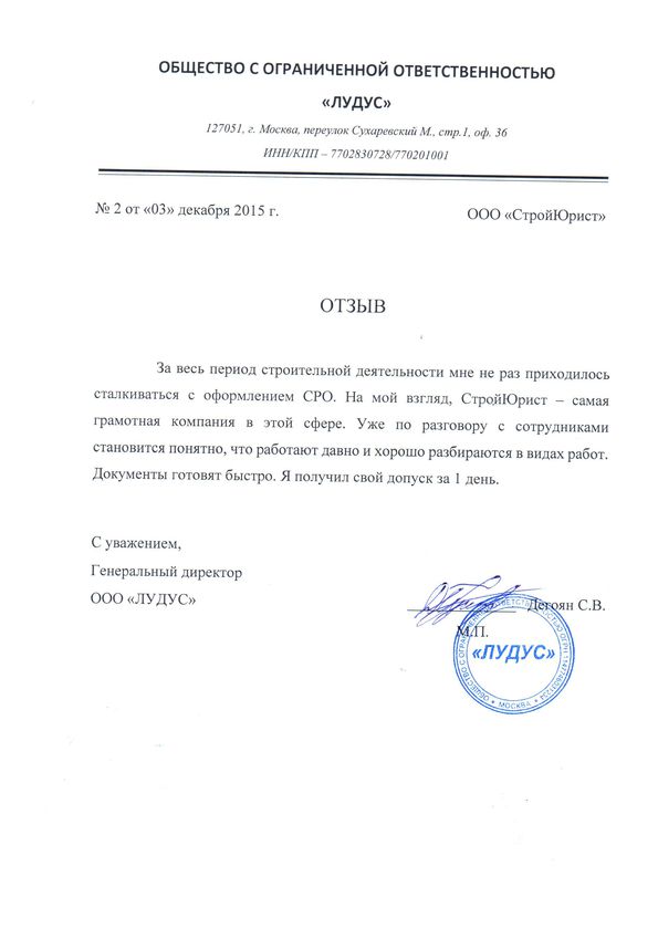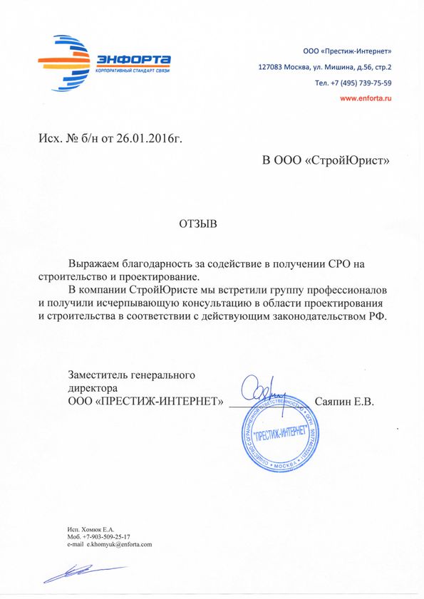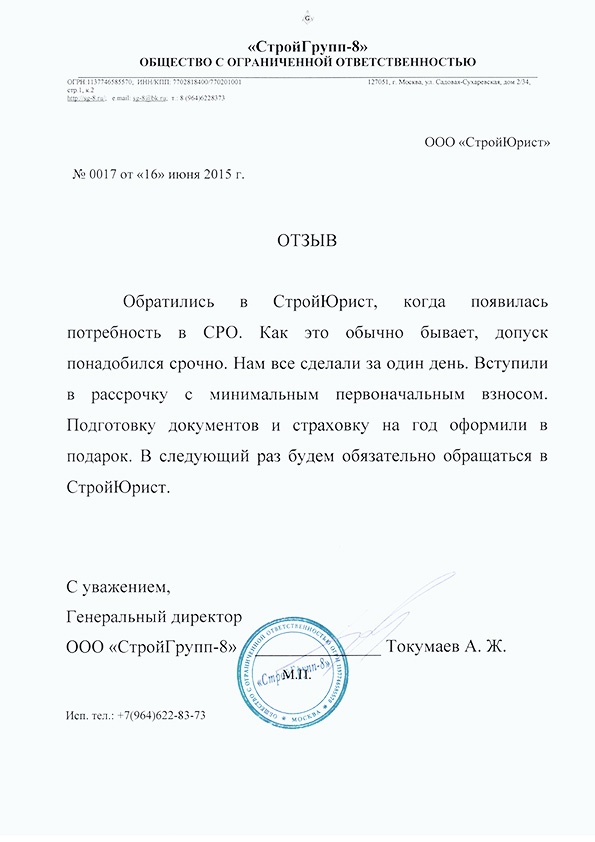 Отзывы клиентов "СтройЮрист" по вступлению в СРО в Мытищах
