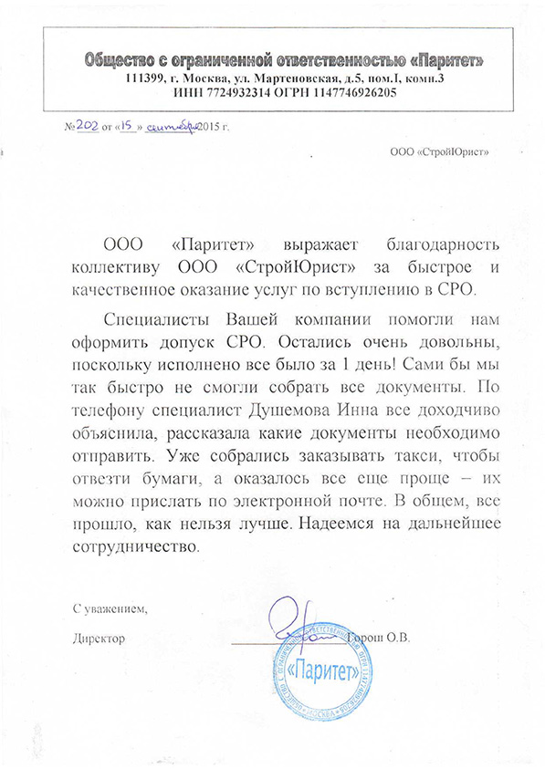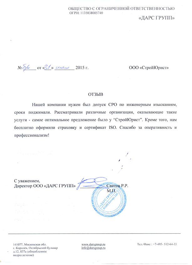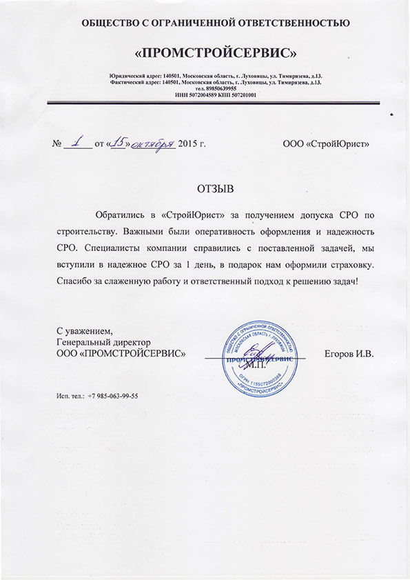 Отзывы клиентов "СтройЮрист" по вступлению в СРО в Мытищах