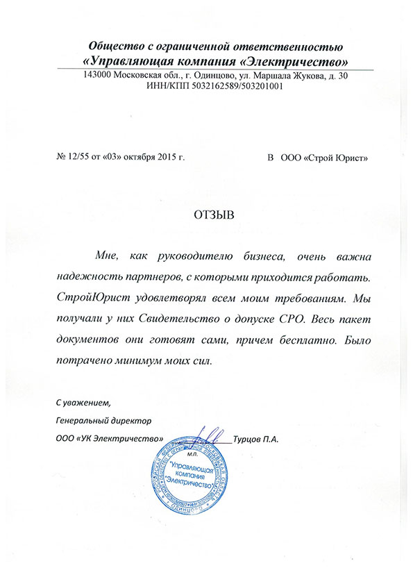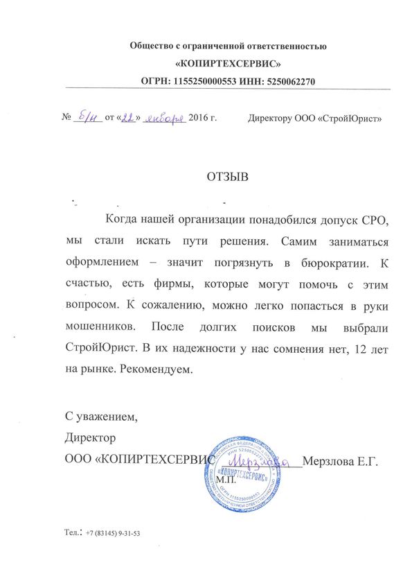 Отзывы клиентов "СтройЮрист" по вступлению в СРО в Мытищах