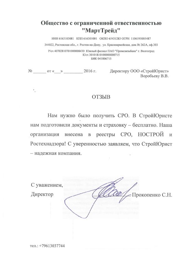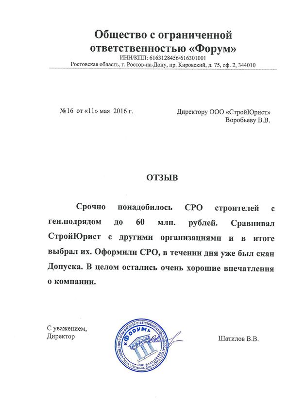 Отзывы клиентов "СтройЮрист" по вступлению в СРО в Мытищах