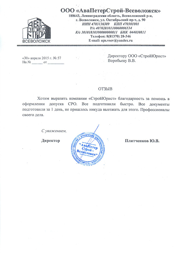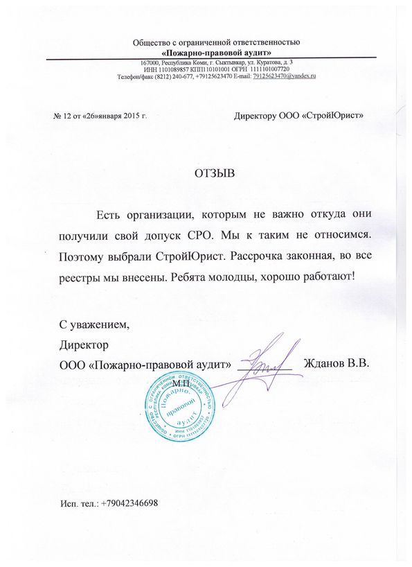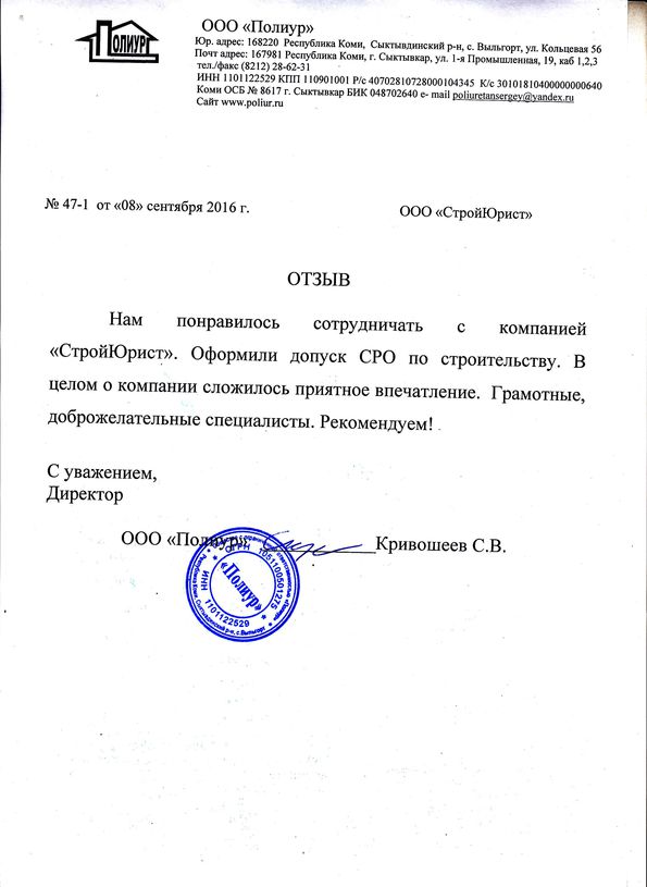 Отзывы клиентов "СтройЮрист" по вступлению в СРО в Мытищах