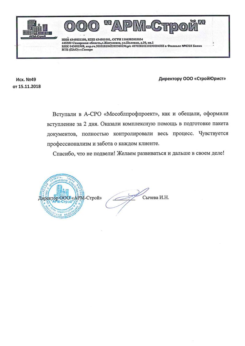 Отзывы клиентов "СтройЮрист" по вступлению в СРО в Мытищах
