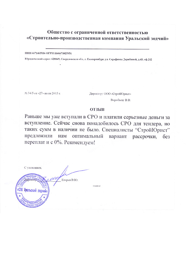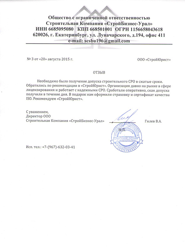 Отзывы клиентов "СтройЮрист" по вступлению в СРО в Мытищах