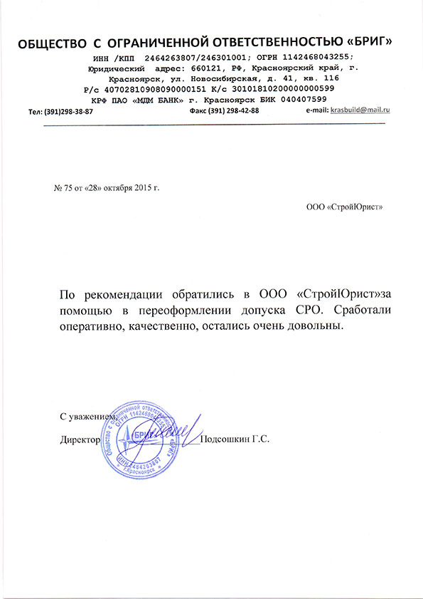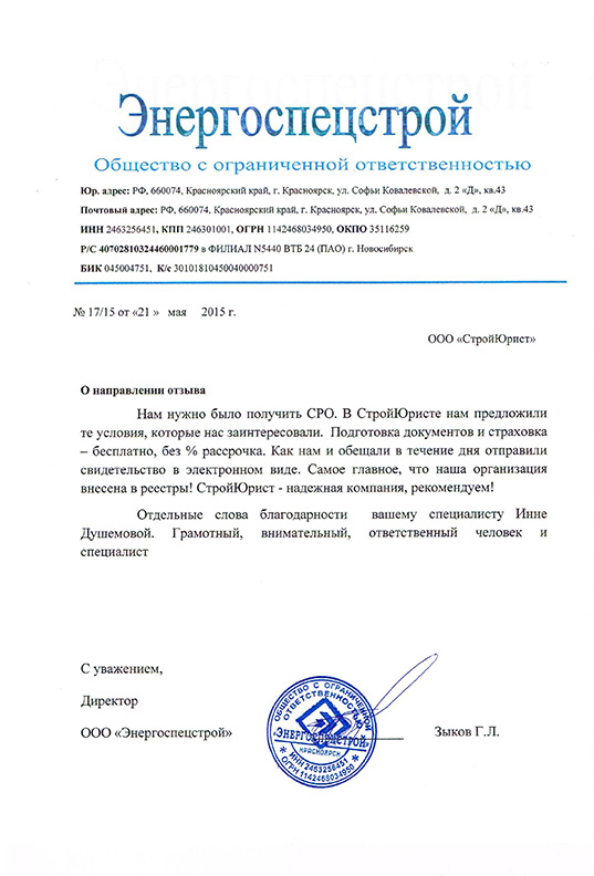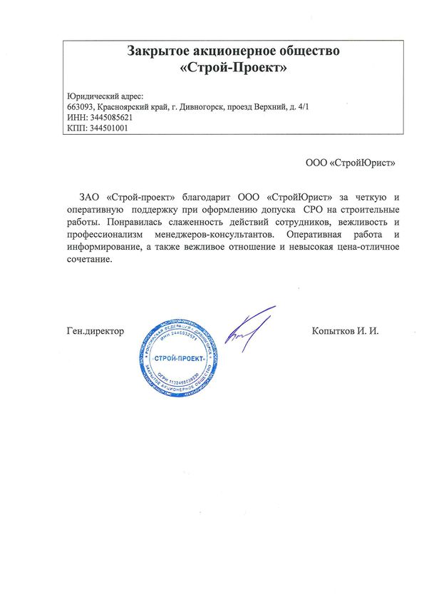 Отзывы клиентов "СтройЮрист" по вступлению в СРО в Мытищах
