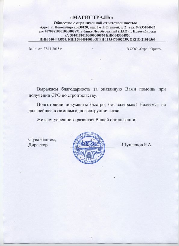 Отзывы клиентов "СтройЮрист" по вступлению в СРО в Мытищах