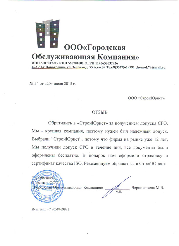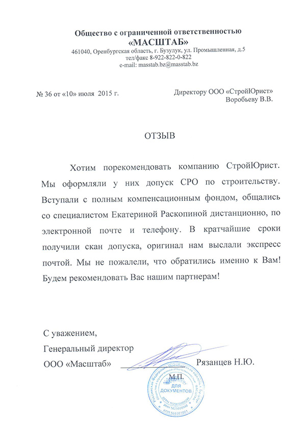 Отзывы клиентов "СтройЮрист" по вступлению в СРО в Мытищах