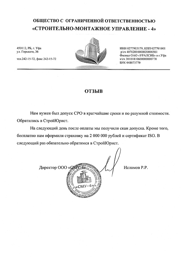 Отзывы клиентов "СтройЮрист" по вступлению в СРО в Мытищах