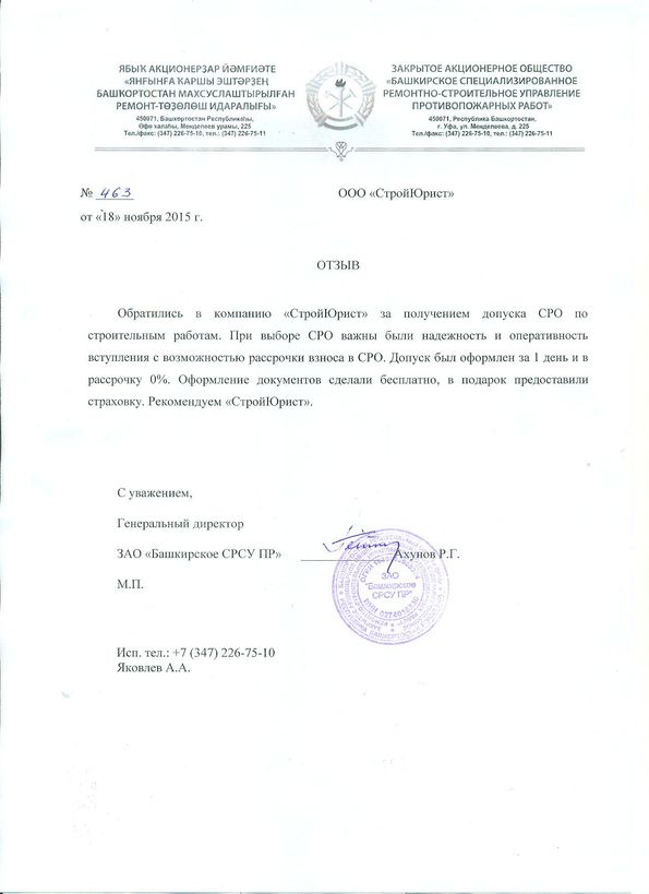 Отзывы клиентов "СтройЮрист" по вступлению в СРО в Мытищах