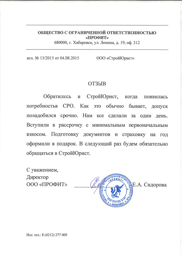 Отзывы клиентов "СтройЮрист" по вступлению в СРО в Мытищах