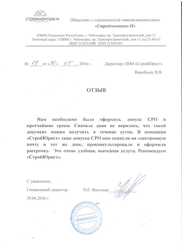 Отзывы клиентов "СтройЮрист" по вступлению в СРО в Мытищах