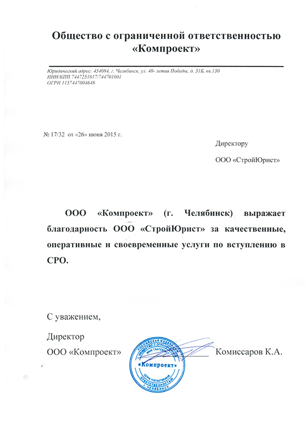 Отзывы клиентов "СтройЮрист" по вступлению в СРО в Мытищах