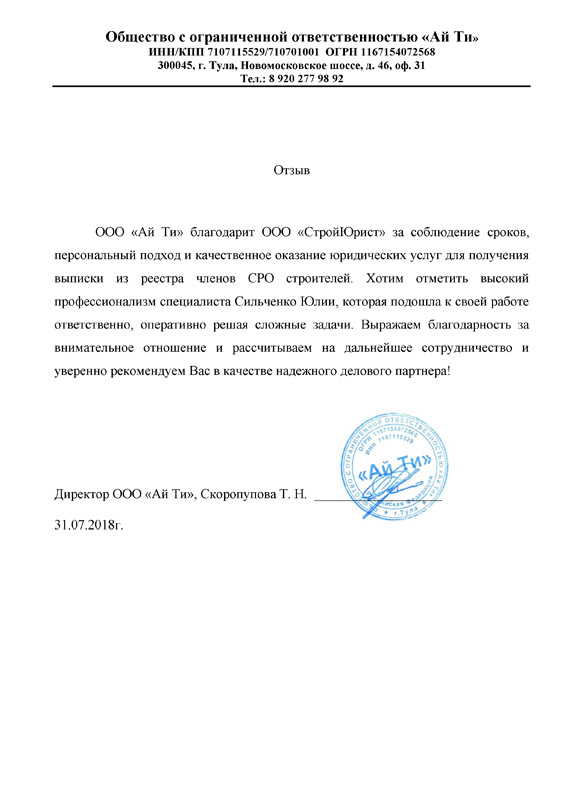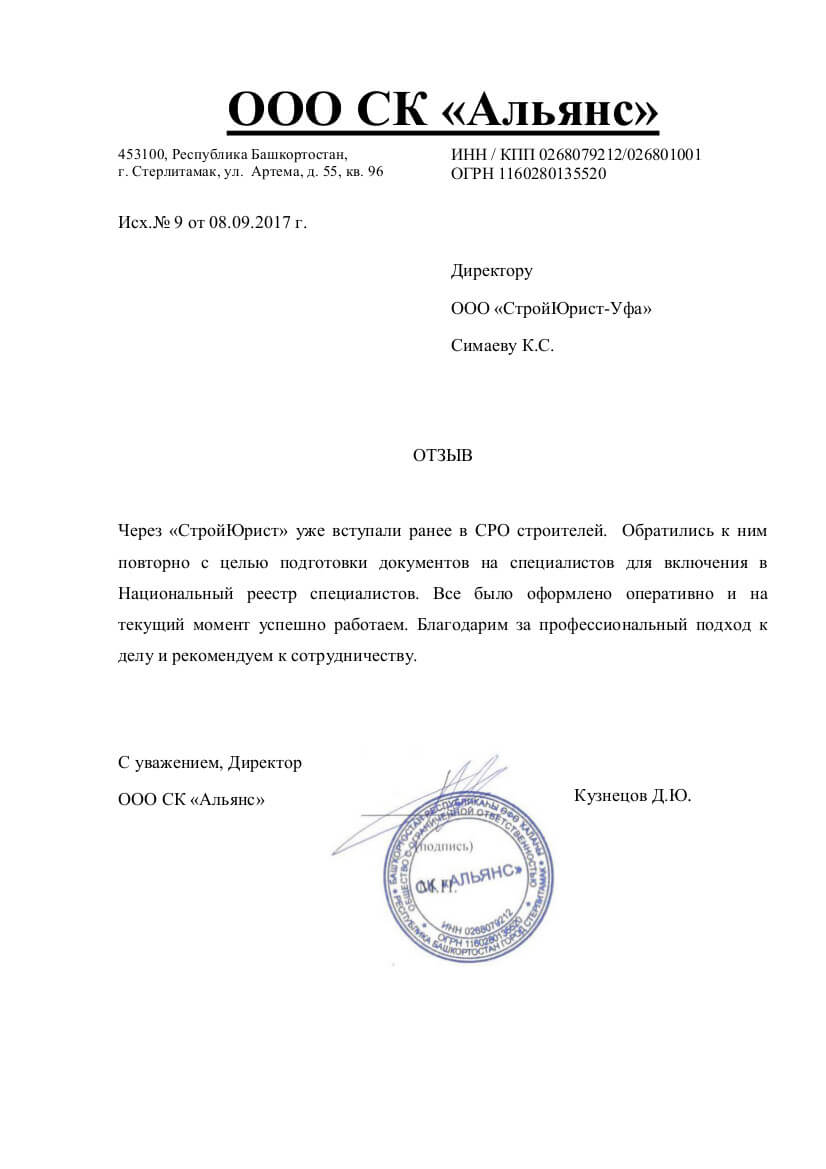 Отзывы клиентов "СтройЮрист" по вступлению в СРО в Мытищах