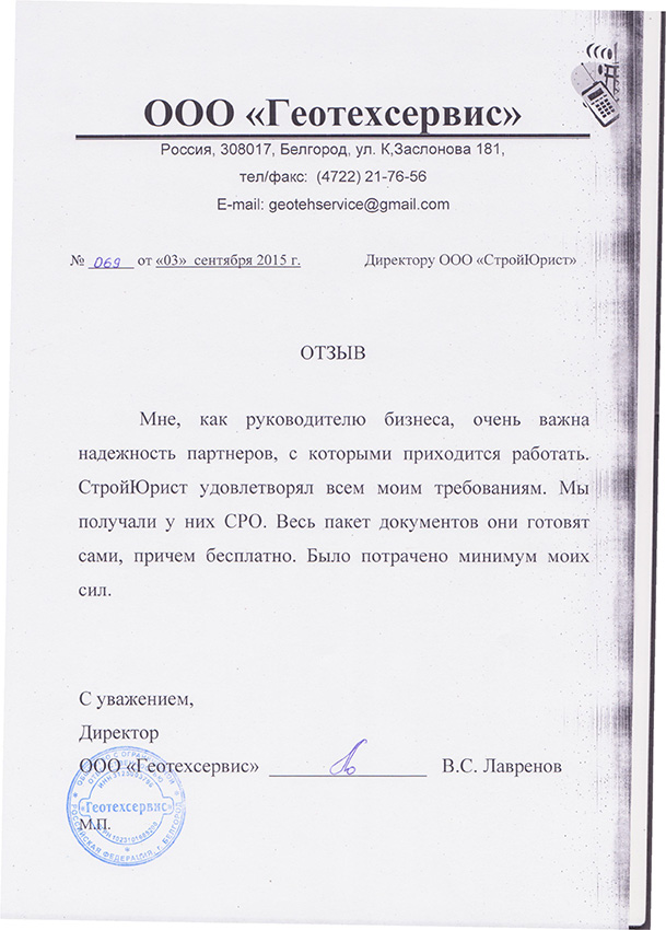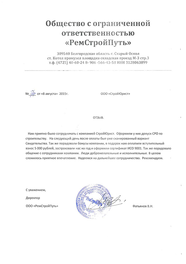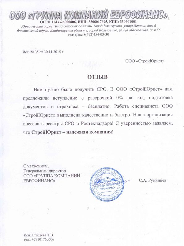 Отзывы клиентов "СтройЮрист" по вступлению в СРО в Мытищах